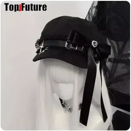 DarkLace – Boina Gótica Lolita em Couro Sintético com Detalhes Elegantes